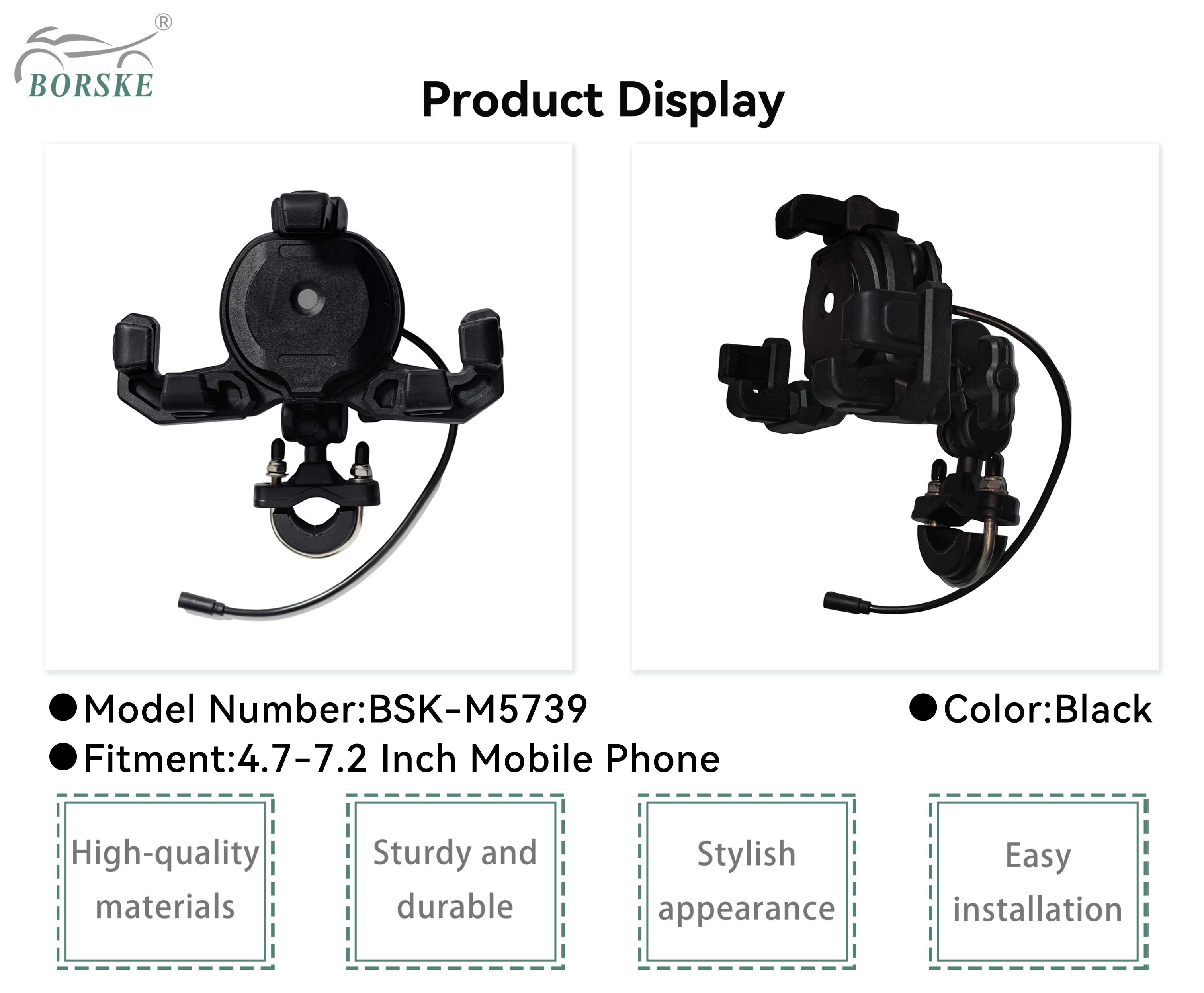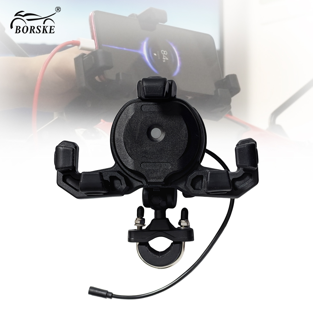 Borske Waterproof 360 Adjustable Wireless Type-C Charger Motorcycle Mobile Phone Holder for Cell Phone