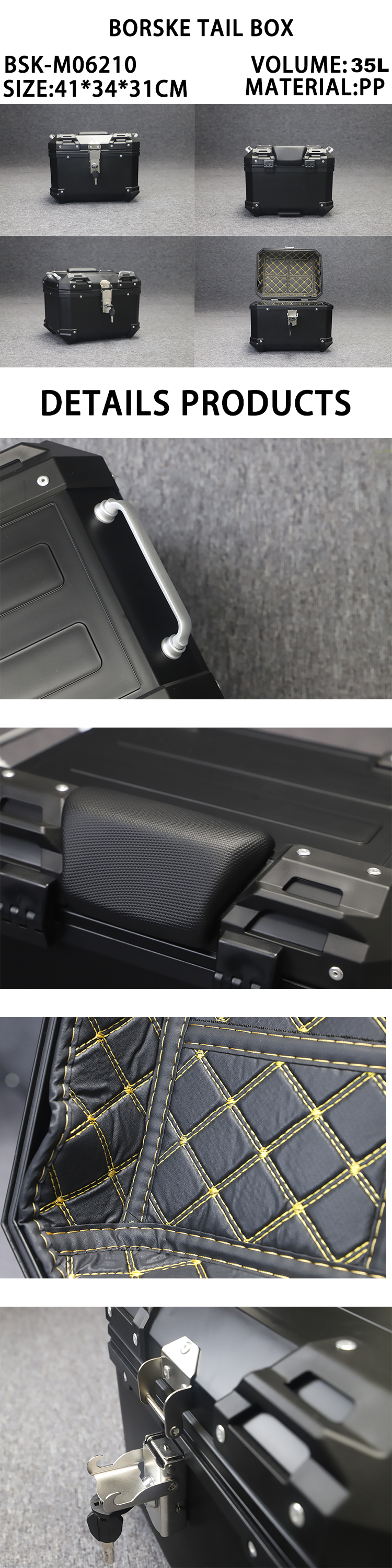 For long rides, the sponge backrest is a big advantage. It gently molds to your waist, keeping you comfortable and focused even after long rides without fatigue.The motorcycle rear top box is made of strong PP materials that can handle rain, sun, and small knocks. It will last a long time even in bad weather. It also looks good with your scooter, with a smooth, streamlined design. Whether you ride to work or go on weekend trips, the BORSKE Scooter Top Box makes riding better with its usefulness, safety, and comfort.