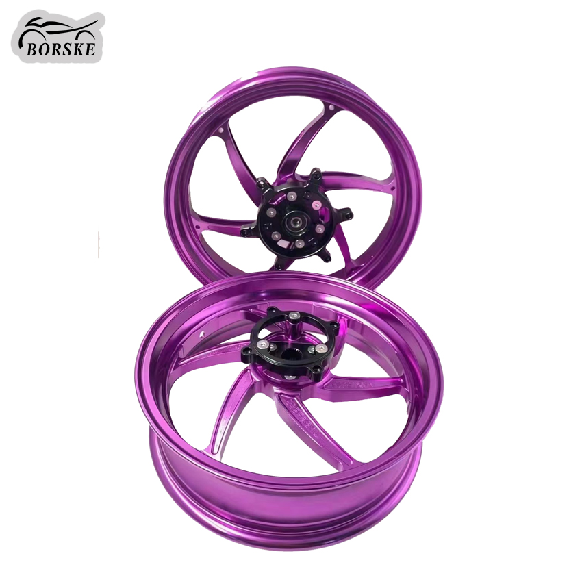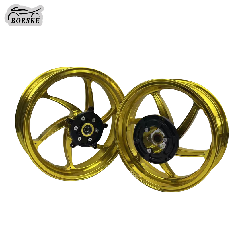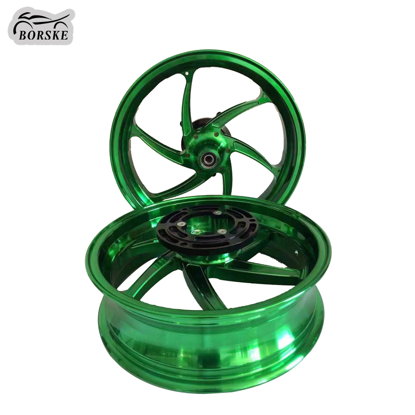 Brand Name:BORSKEProduct name:Motorcycle WheelMaterial:Aluminum alloySize:Front 3.5X15 Inch/ Rear 4.0X 14 InchMOQ:10 PairsColor:Green, Red, Purple, Black,Silver,Gold