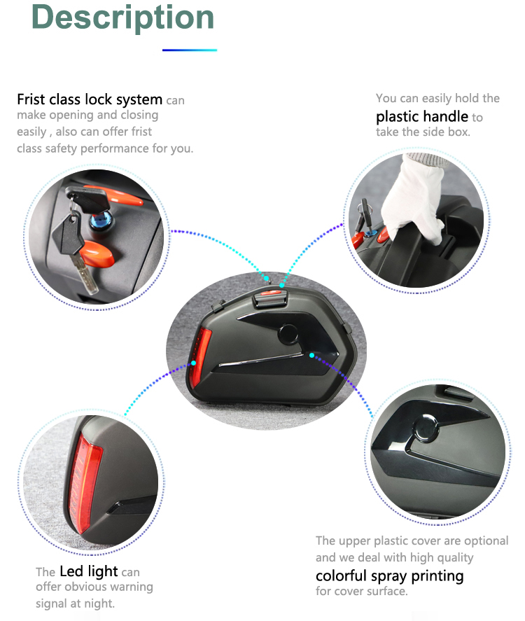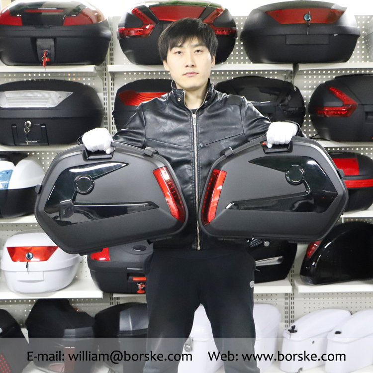 3.The motorcycle side case capacity is 23L with LED.