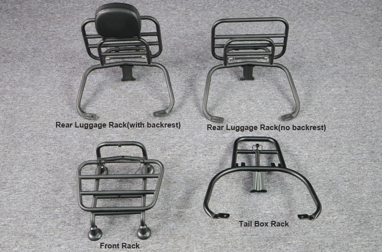 1. Proporciona más espacio para el equipaje, ideal para la instalación de la rejilla portaequipajes delantero, Reemplace su actual. Portaequipajes delantero y dar a su motocicleta un aspecto clásico.