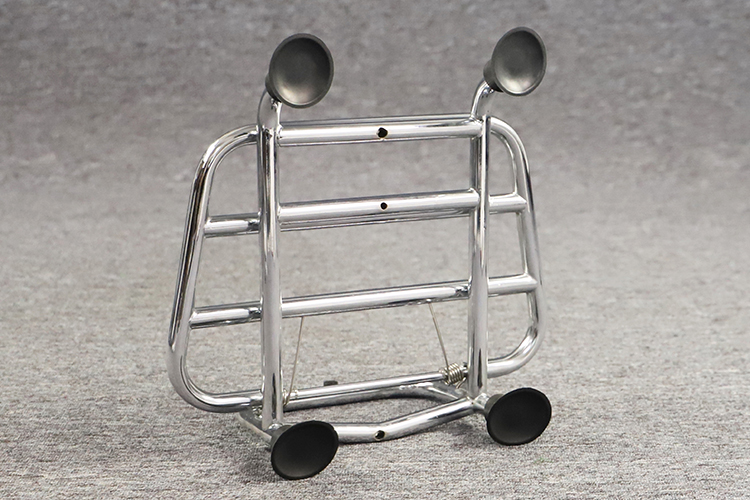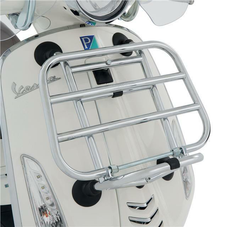 2. Completa el aspecto cromado de tu moto con un gran portaequipajes brillante en la parte delantera.