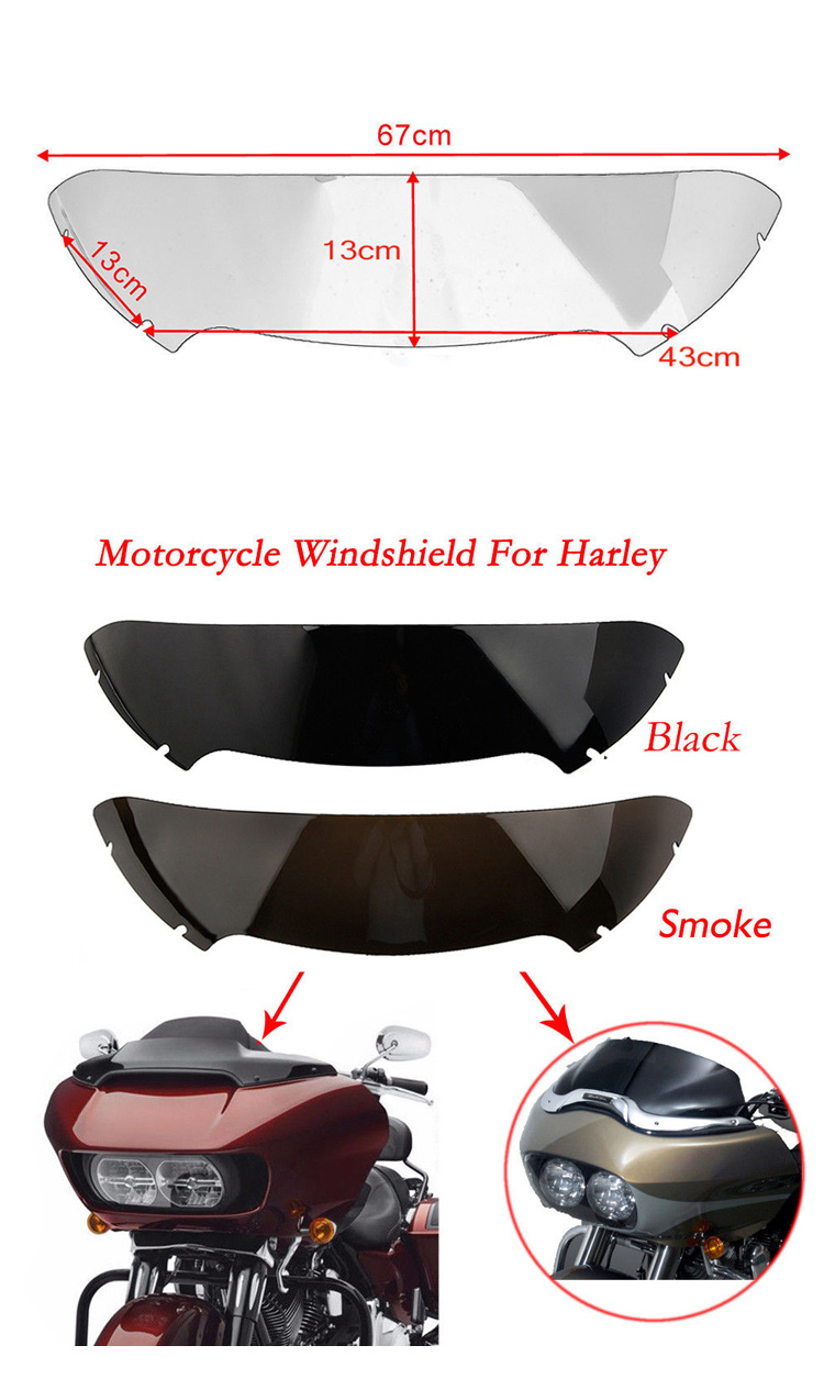 Hecho a medida para Harley Road Glide FLTRX FLTRU 15-18, nuestro parabrisas Harley Road Glide es un destacado entre los parabrisas Road Glide, también un perfecto accesorio Harley Road Glide. Combina un bonito estilo único con la practicidad, centrándose en mejorar el aspecto de su moto.