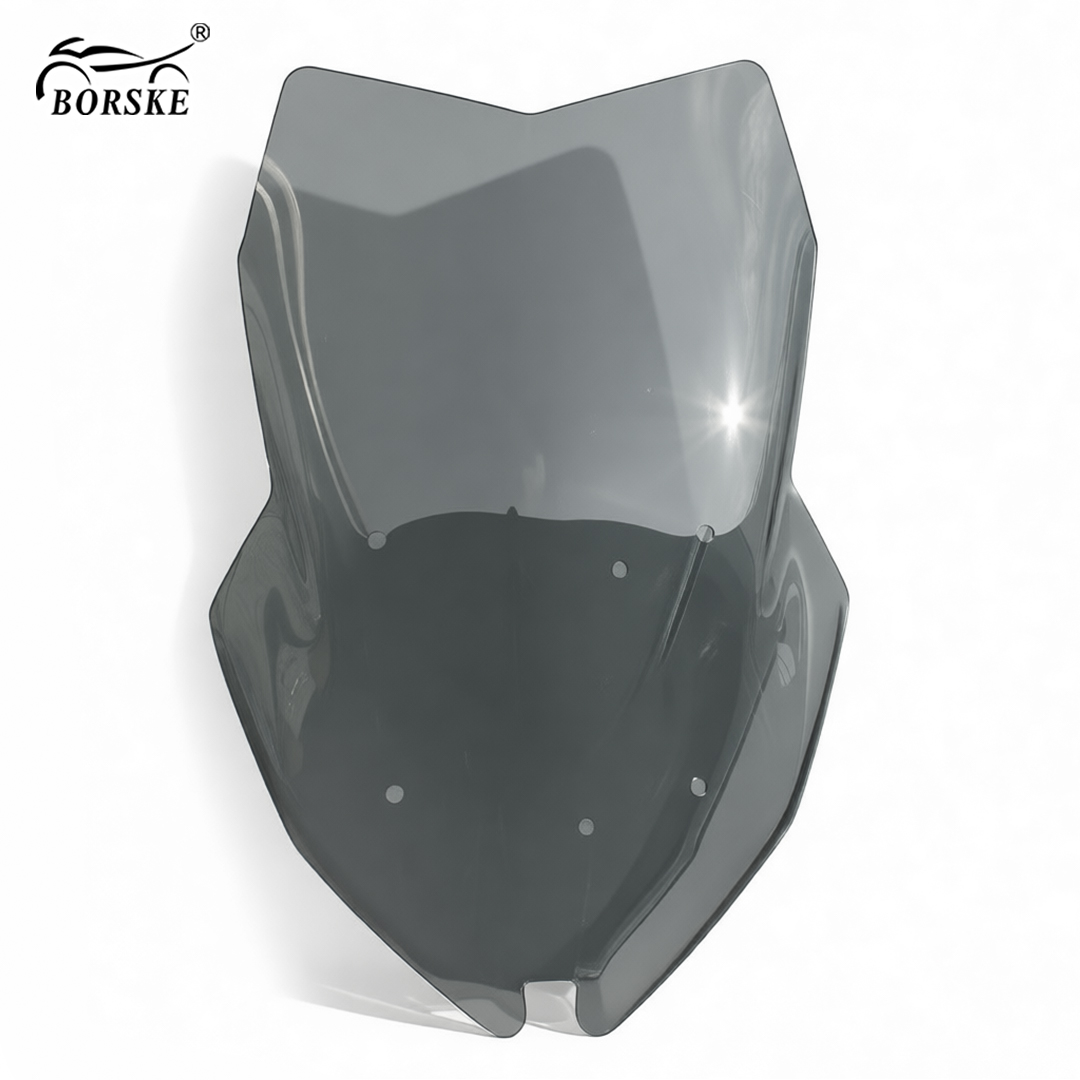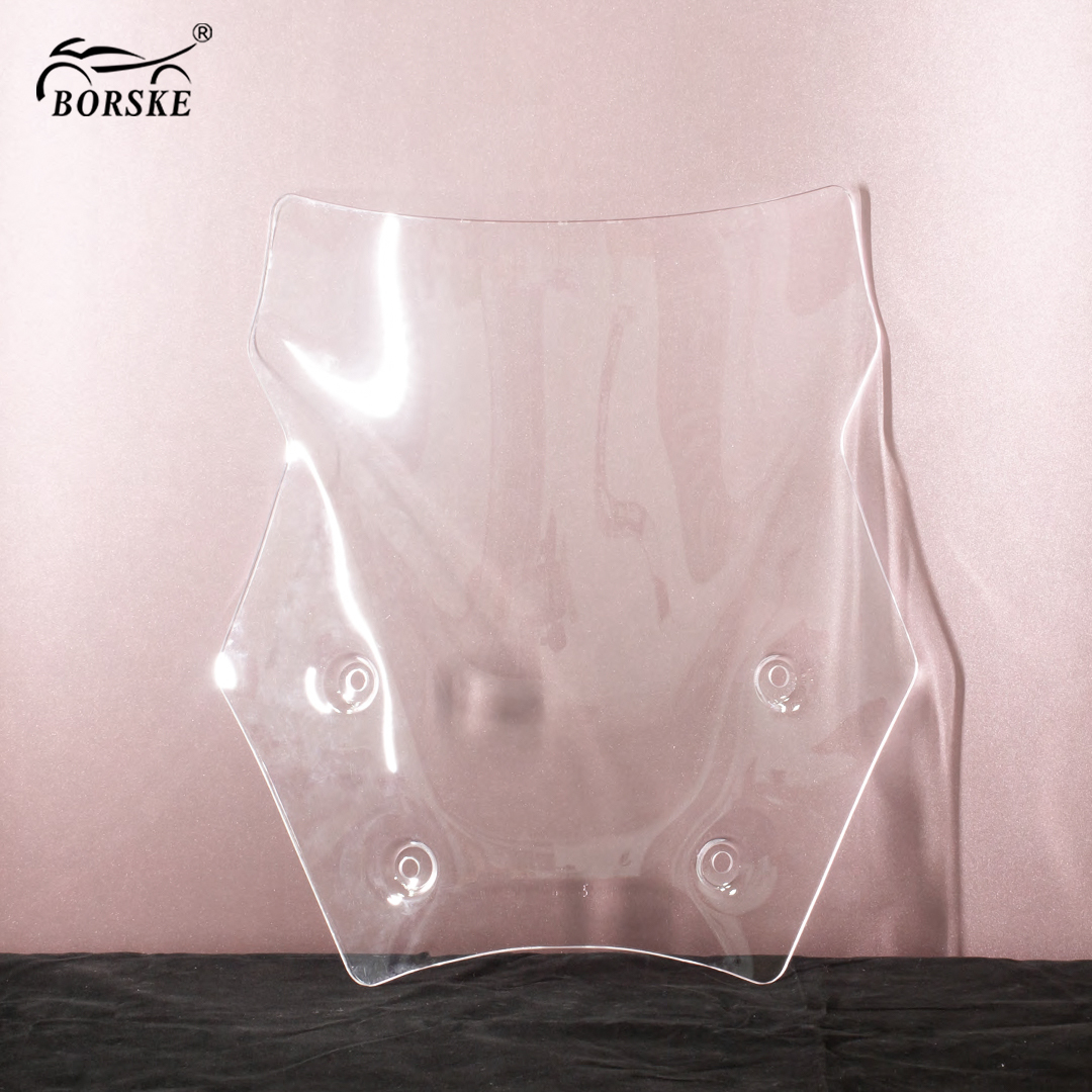 The shape and size of windshields vary by motorcycle type and make. Some windshields are fixed to the frame, while others are adjustable and can be adjusted according to the needs of the rider. The upper part of some motorcycle windshields flips up to form a small windshield, which can more effectively reduce wind resistance and the impact of wind on the rider.