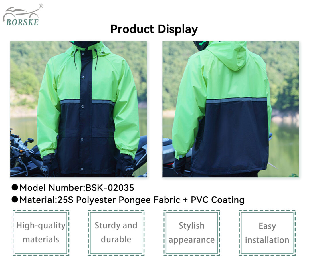 पोंगी फैब्रिक पीवीसी कोटेड मोटरसाइकिल राइडिंग रेनकोट