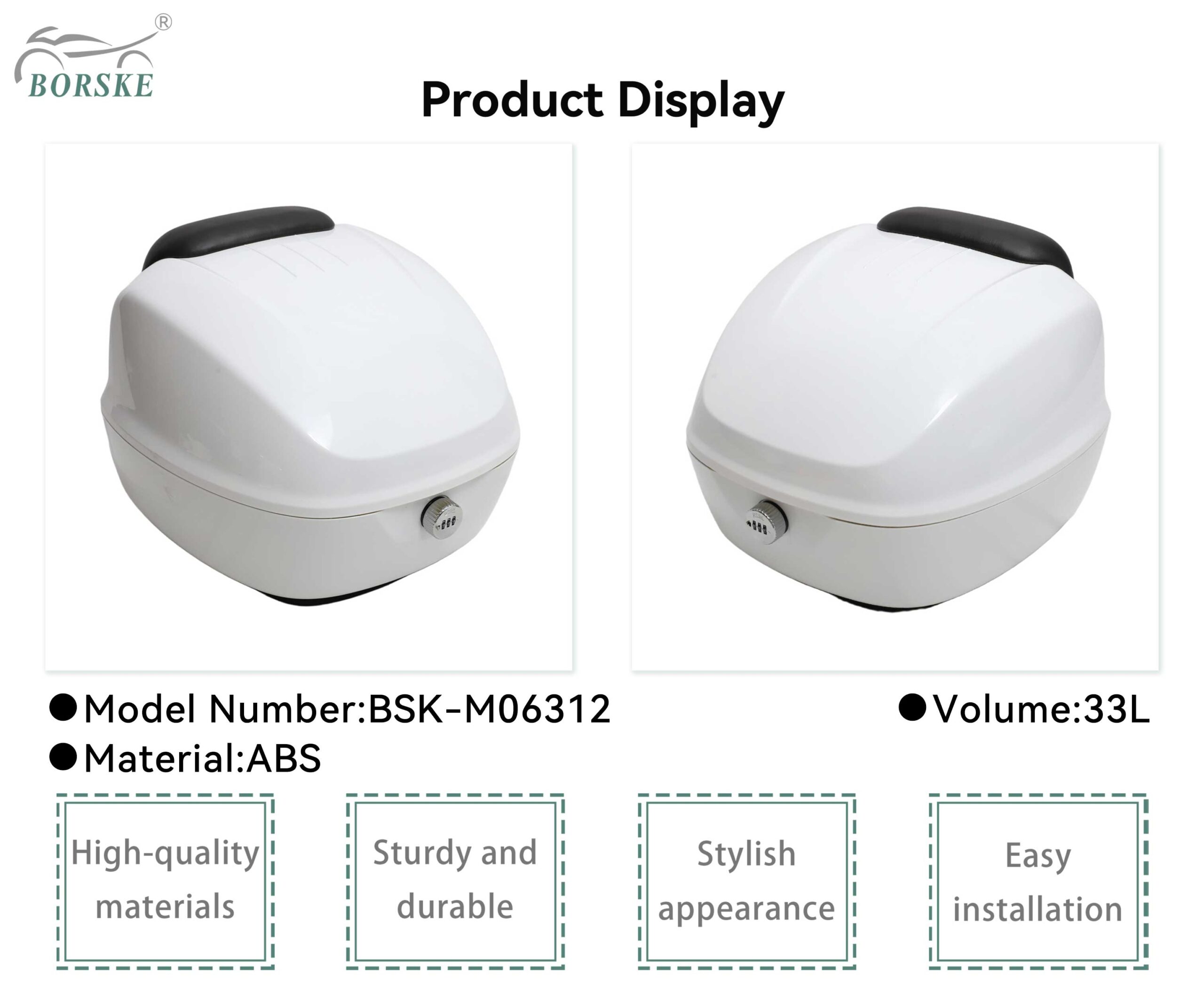 Borske Manufacturer Motorbike Trunk Motorcycle Luggage Box Travel Waterproof 33L ABS Plastic Storage Case