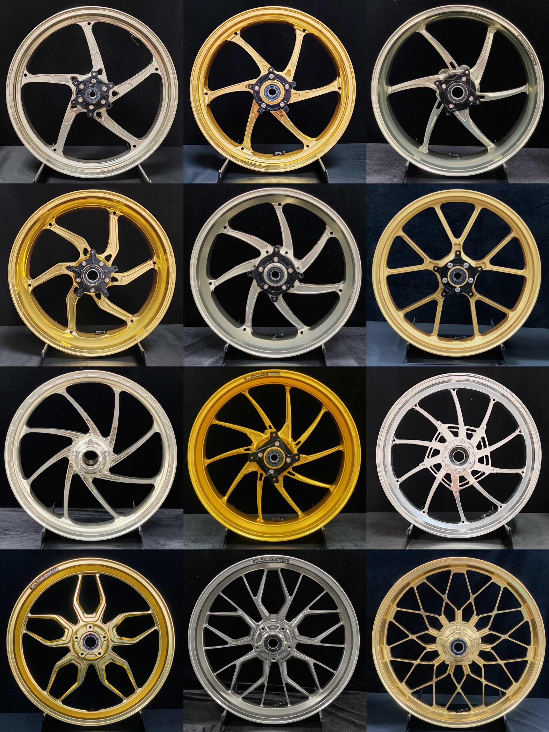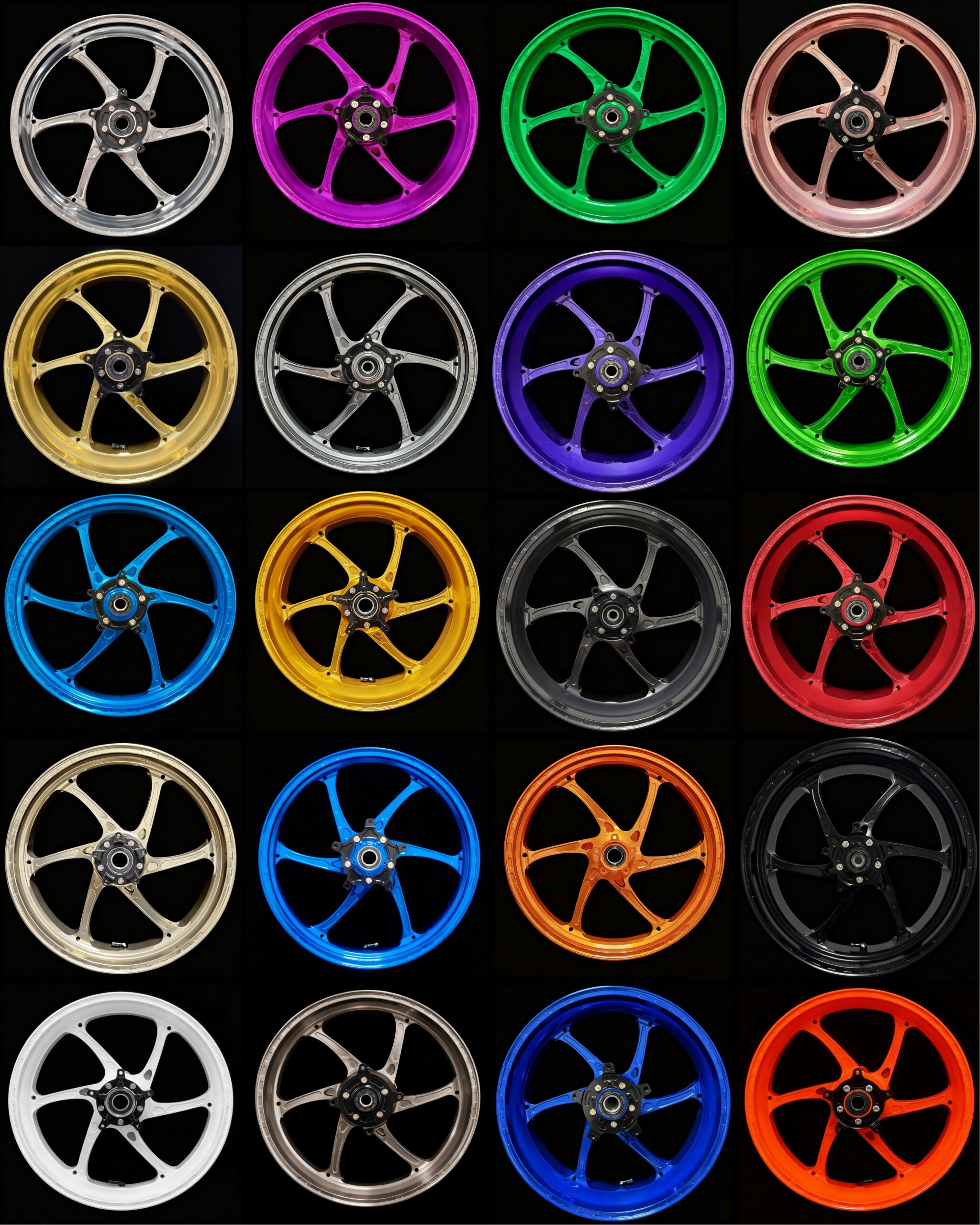 We offer many styles and colors. Popular options include black motorcycle wheels, matte and glossy finishes.