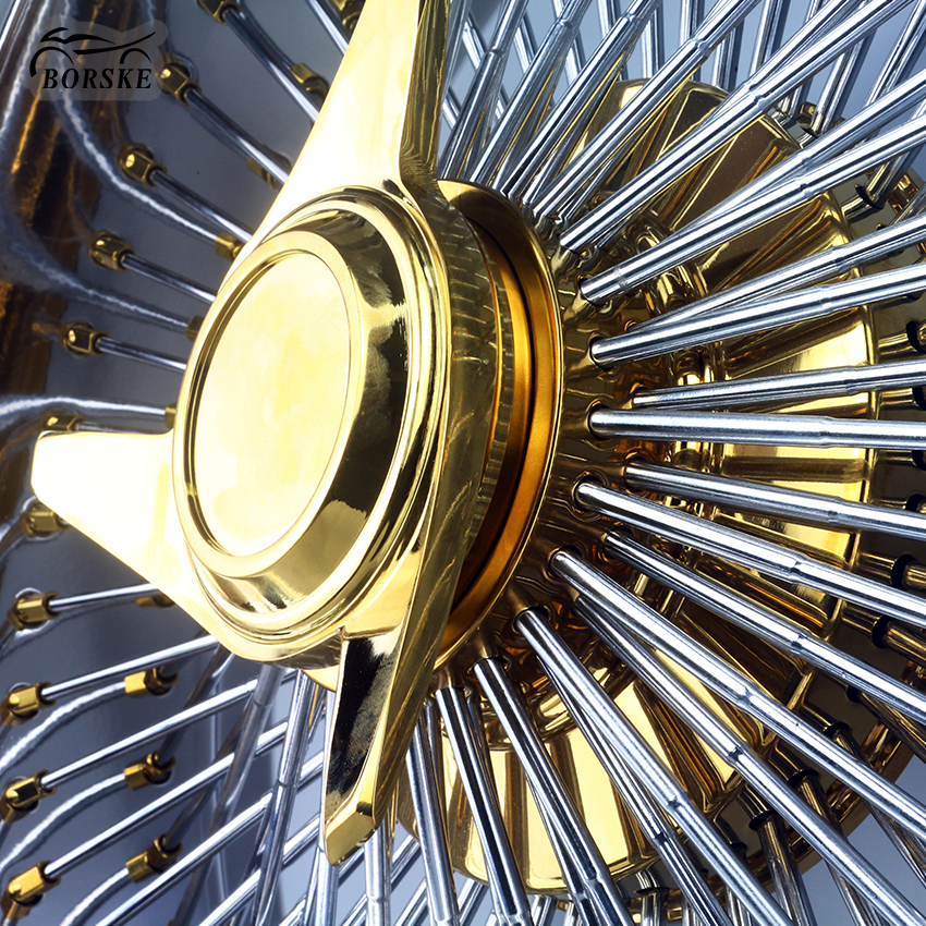 Borske Car spoked wheels/Wire Wheels/Steel Car Wheels/usually use lightweight alloy materials, such as aluminum alloy, to improve strength and reduce weight, while also having good heat dissipation properties. The spoked wheels need to have sufficient strength and durability to cope with different road conditions and loads.