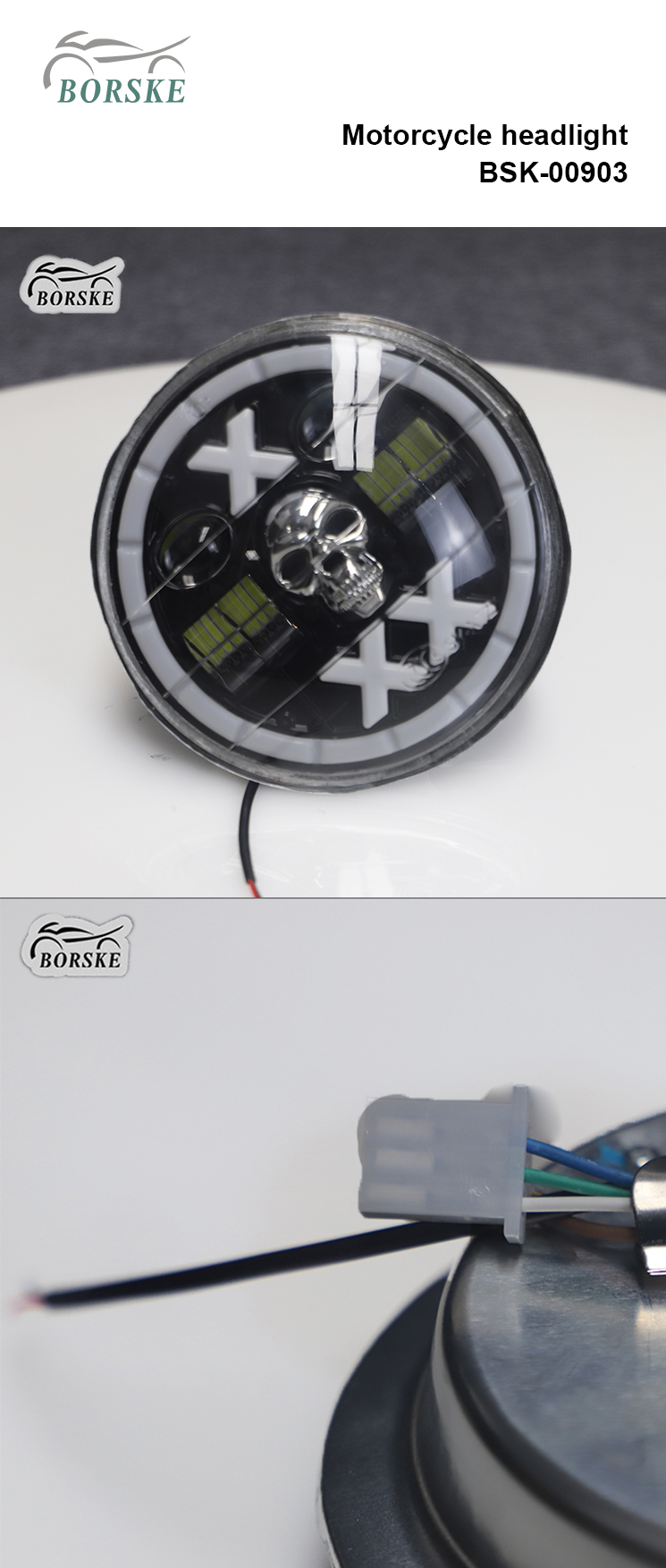 Borske motorcycle Parts Company Farol para motociclos Luz branca/amarela