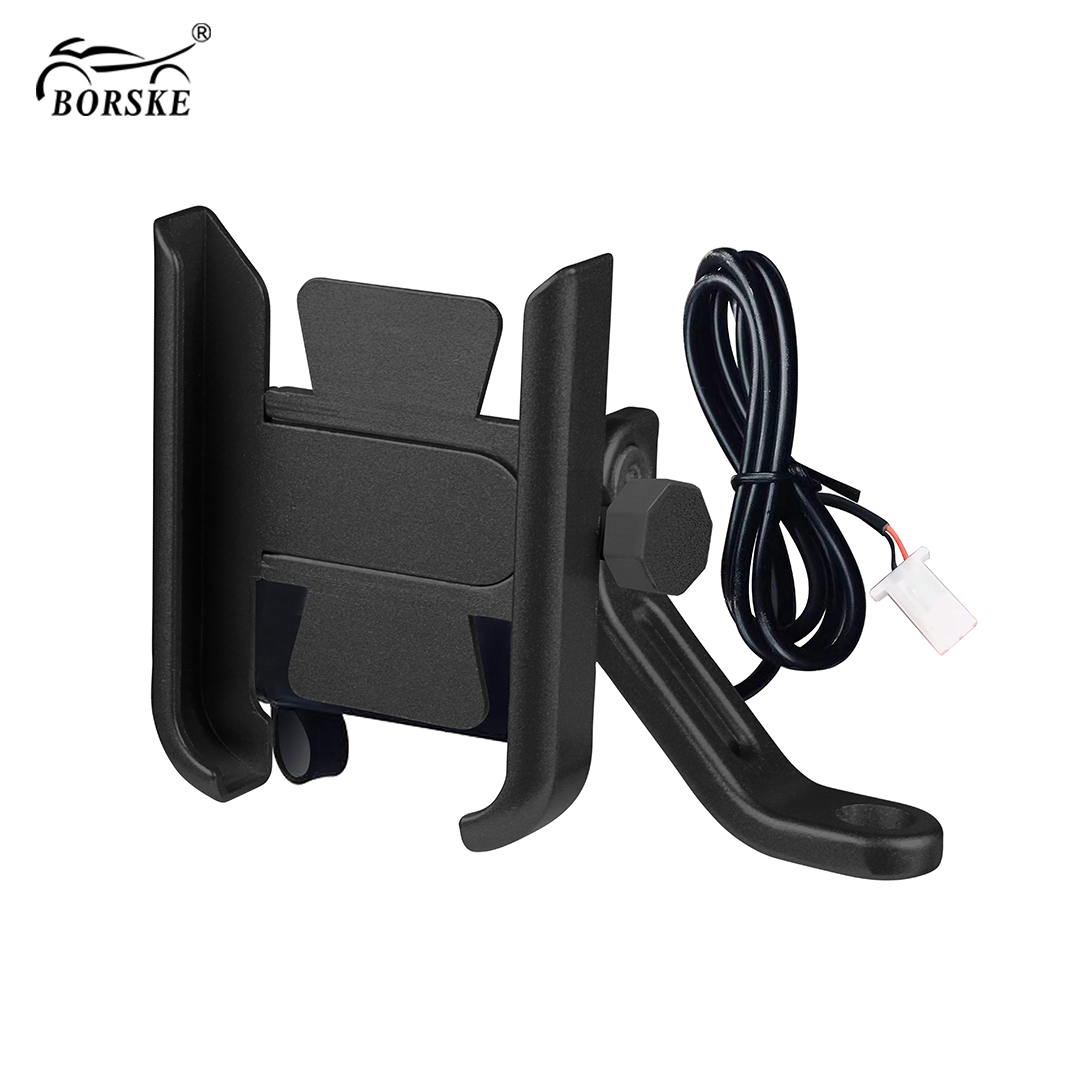 Borske OEM Aluminum Alloy USB Charging Bike Bicycle Rearview Mirror Waterproof Bracket Motorcycle Cellphone Holder