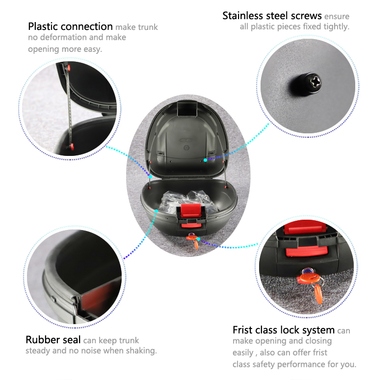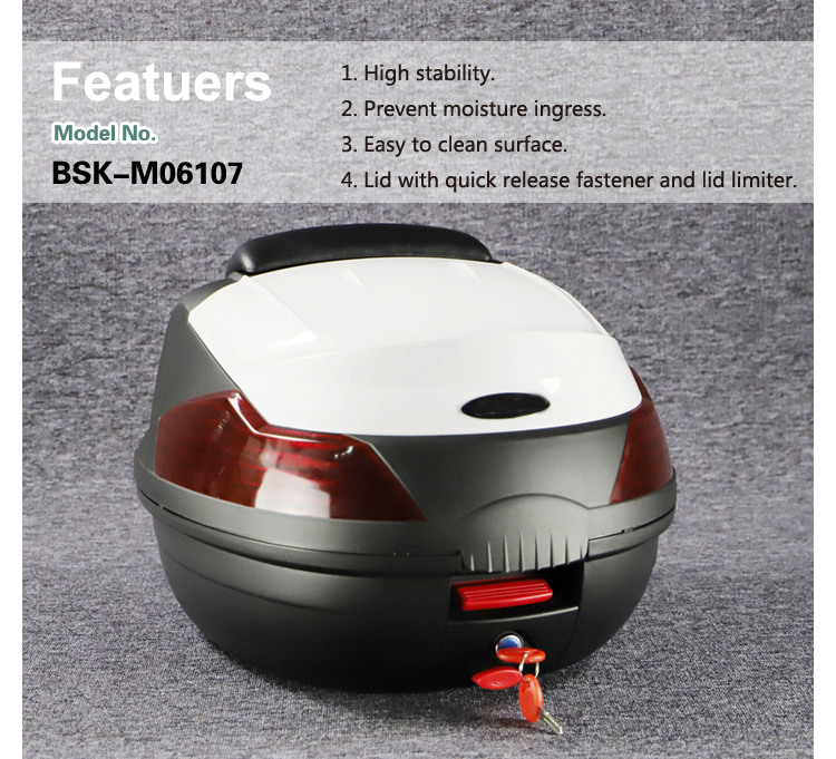 1. Багажник мотоцикла закрывается на замок для безопасной поездки.