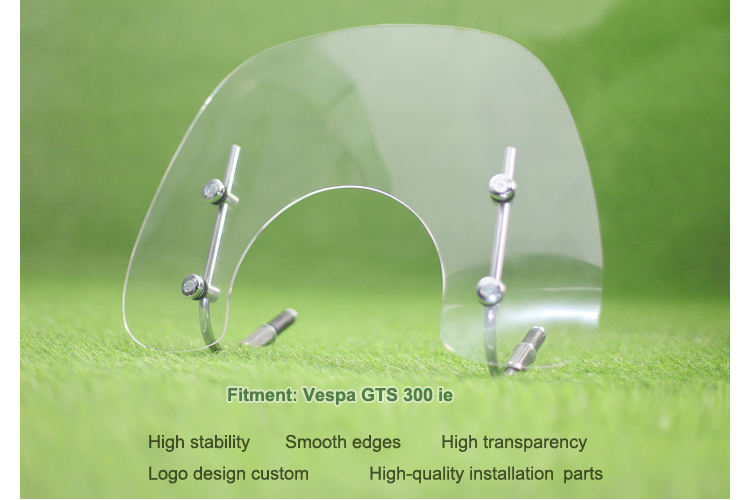 1. Прозрачное ветровое стекло для нового Vespa GTS. Включает все необходимые детали для установки.