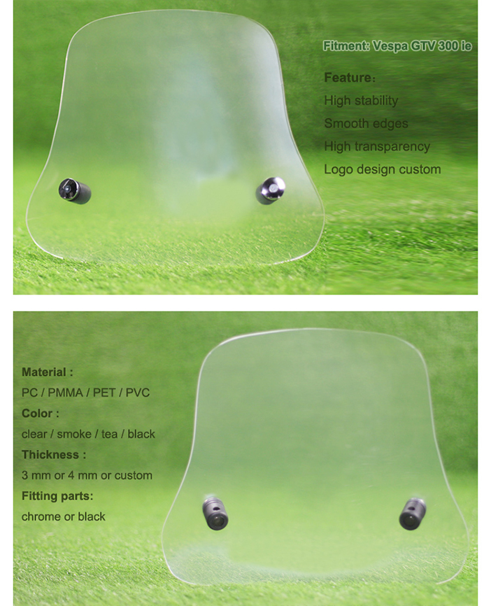 Модель NO..: BSK-V-0238Подходит для: Vespa GTS300 т.е. Цвет: прозрачныйТип: Ветровое стекло скутера