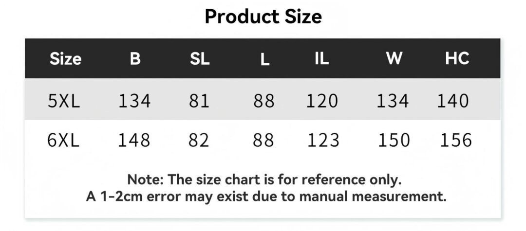 | Kích thước | 5XL (90-130 kg), 6XL (130-145 kg) |